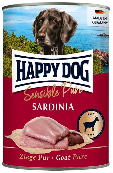 Ren nydelse af animalsk protein fra ged – til ægte kødelskere. Fremstillet i Tyskland af 100% kød og animalske biprodukter fra ged. Indeholder ingen kornprodukter og er fremstillet uden tilsat sukker. Anvendelsen af ged som eneste kilde til animalsk protein, gør den særlig velegnet til fodring af sensible hunde. Sensible Pure Sardinia kan bruges som fuldfoder eller i kombination med Happy Dog flagefoderblanding eller Happy Dog tørfoder.