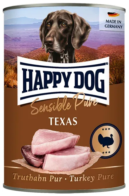 Ren nydelse af animalsk protein fra kalkun – til ægte kødelskere. Fremstillet i Tyskland af 100% kød og animalske biprodukter fra kalkun. Indeholder ingen kornprodukter og er fremstillet uden tilsat sukker. Anvendelsen af kalkun som eneste kilde til animalsk protein, gør den særlig velegnet til fodring af sensible hunde. Sensible Pure Texas kan bruges som fuldfoder eller i kombination med Happy Dog flagefoderblanding eller Happy Dog tørfoder.
